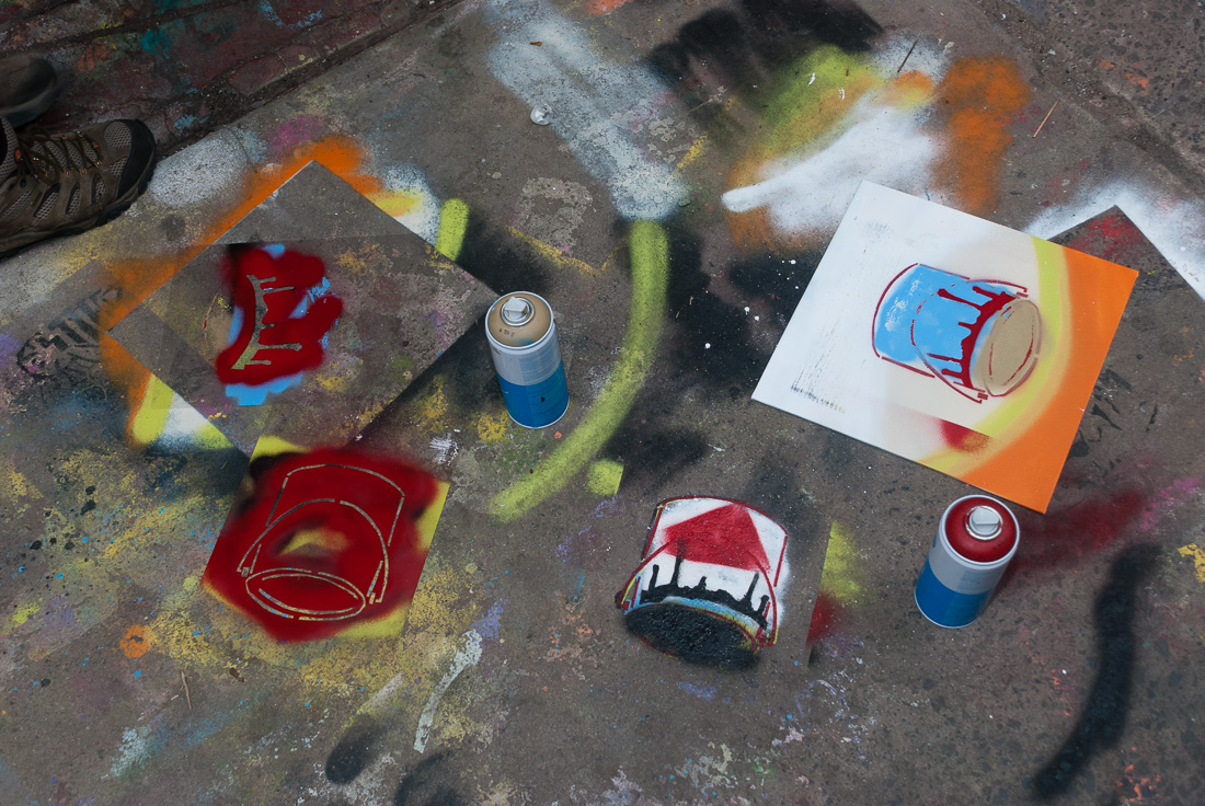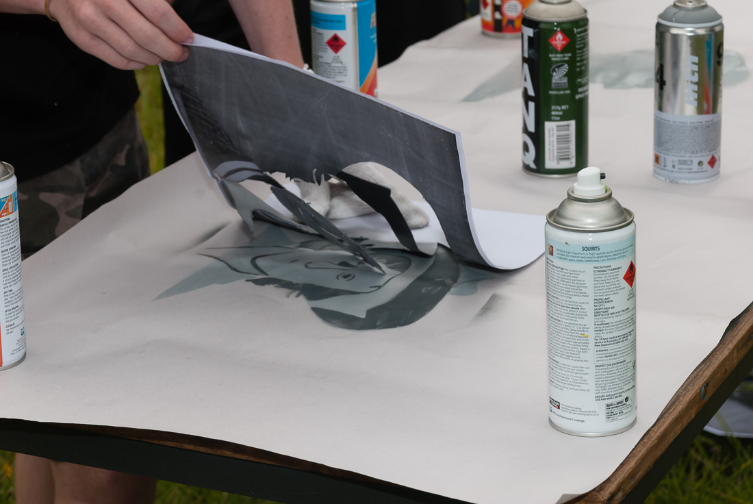 During the workshop at Blender, Darcy also guided youth members through a stencil workshop creating canvases for the day.