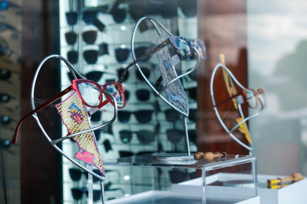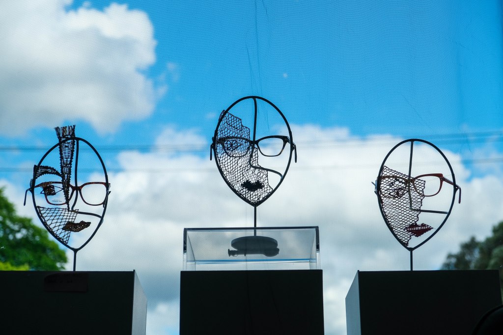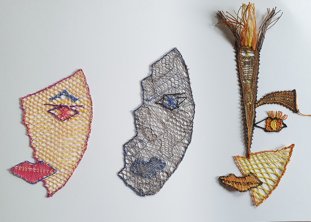 The first piece I created was for Watsonia Optical. Using threads that I had in my collection I set about designing profiles of faces that would sit within custom made wire armatures in the shape of a face. It was a great opportunity to experiment with design and play with various grounds and textures. I loved the freedom of being able to play with stitches and tweak the design as I was working.