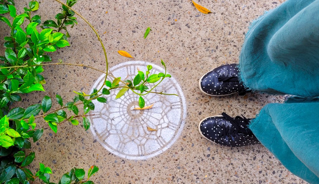 There were three components to the public art element. The first were stencils designed by Vicki and sprayed with temporary line marking paint in the area surrounding the Gallery. The aim for this was to interrupt the space and introduce the concept of lace in unexpected places.