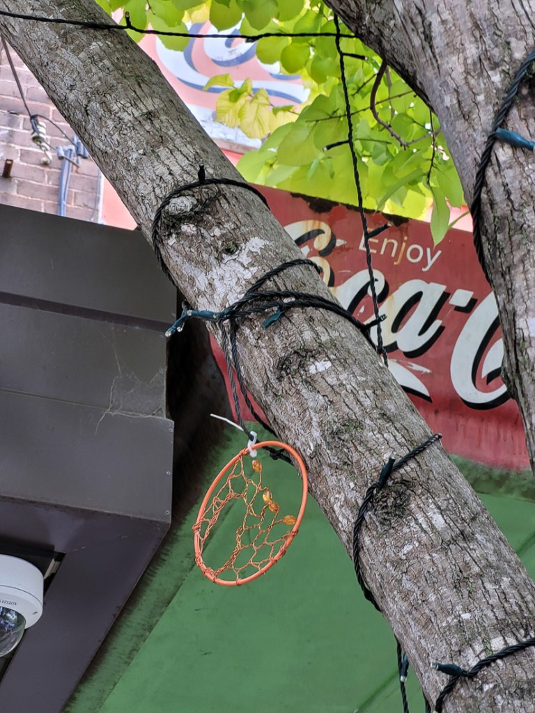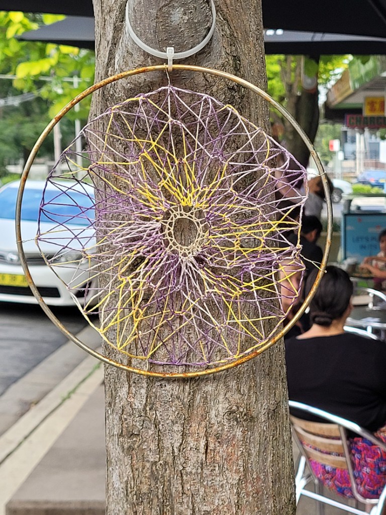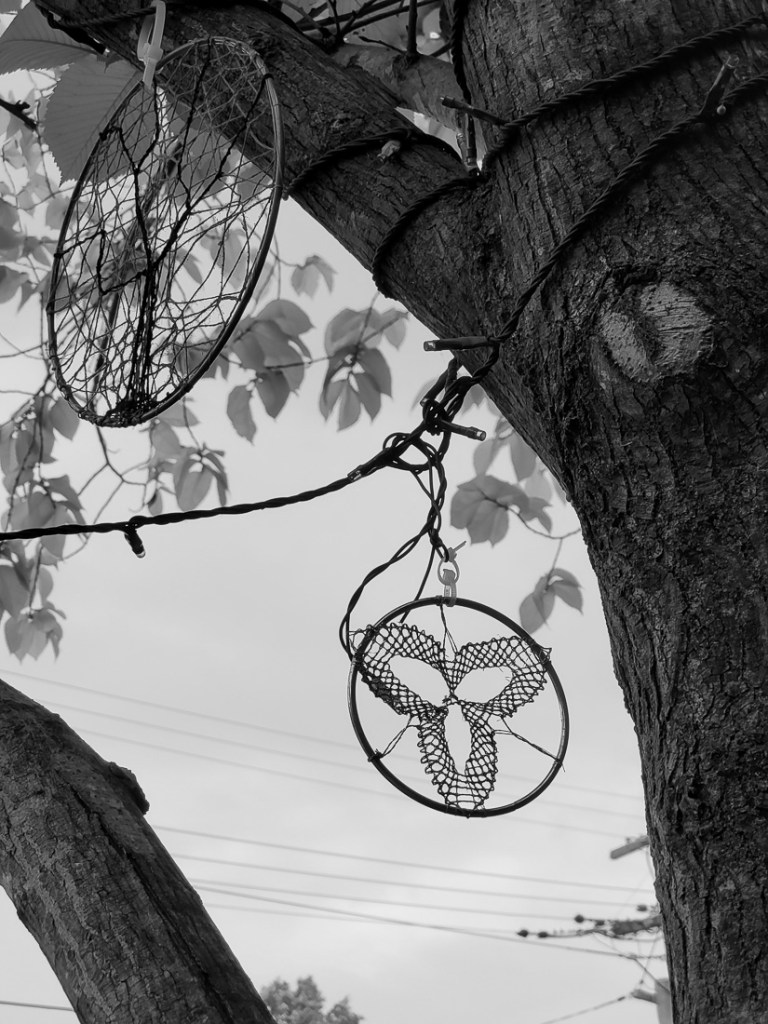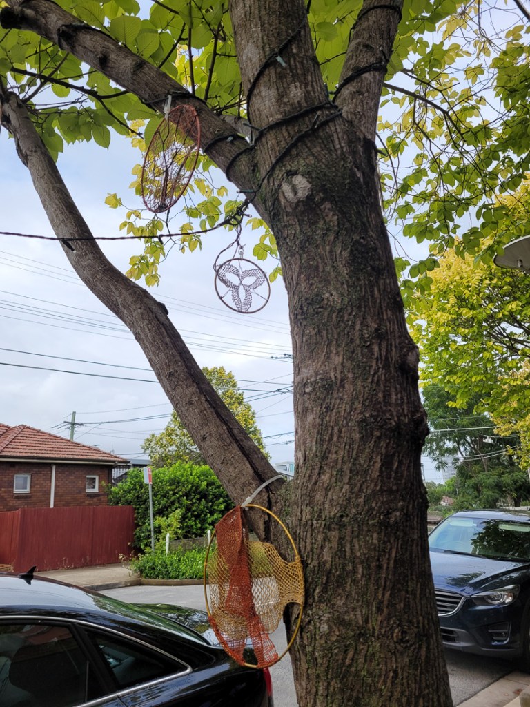 These 48 rings were hung within the trees of Victoria and Queen St in Concord West for the duration of Festival of Lace. It was a more subtle work with a sense of discovery about it.